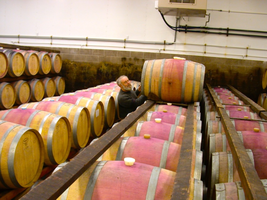 Dabei geht es nicht um den sogenannten »Barrique-Geschmack«, sondern um die natürliche Klärung des Weines, mehr noch aber um die gezielte Verlängerung der Kettenverbindungen der Gerbstoffe durch langsame Oxidation durch die Fassdauben hindurch. Pures Winzer-Handwerk im Einklang mit der Natur. Hier ein Photo aus dem alten Keller von Laurel Glen. Ray Kaufman verkostet sich durch die Fässer, um die Partien für den Zweitwein »Counterpoint« zu bestimmen.